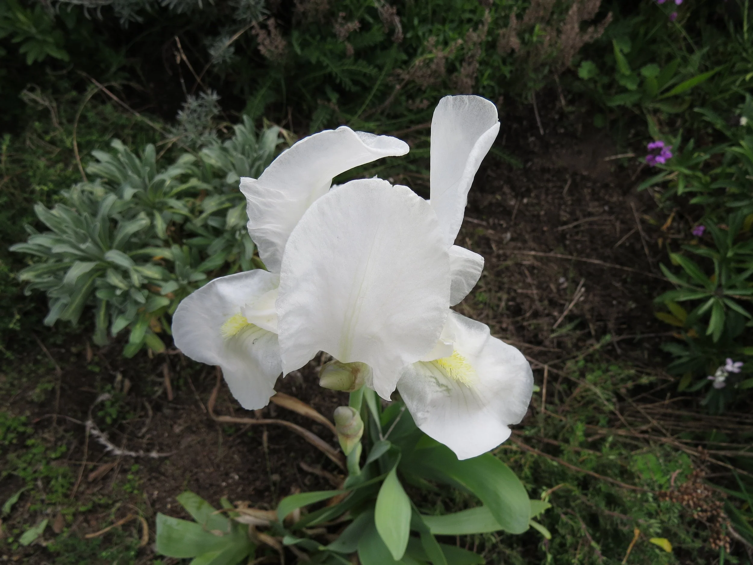 Orris, Iris germanica var. florentina or Iris florentina, is blooming and it's the only iris I have in my garden at present. As you may well guess from its botanical name, it is common near Florence in Italy. Its sweet scent and flowers with pure white petals and yellow centres make it a stunning spring flower.